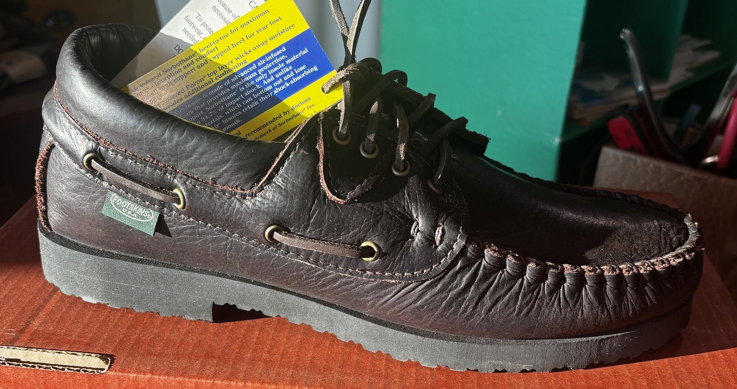 The Flex rubber sole is also fairly new with Footskins but it has been a winner. The outsole is light, dense and relatively thin, yet forgiving; skid resistant with enough cushioning to become your "go to" slip on for work or play. Order a half to a full size larger than your usual.