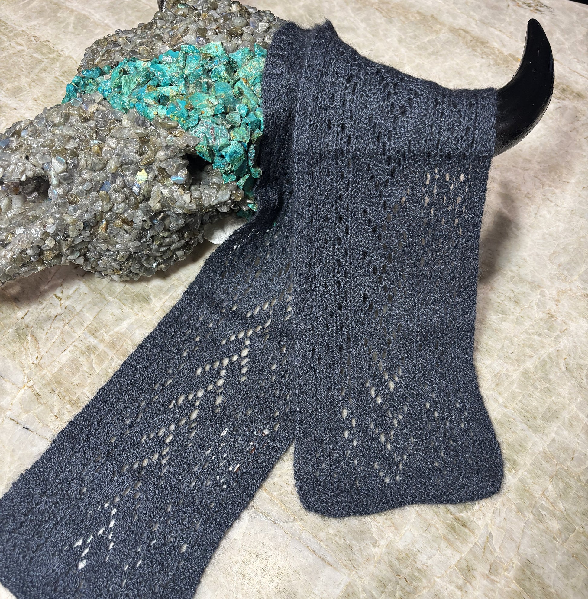 Midnight Muskox/ Merino/ Silk Hand Knit Scarf