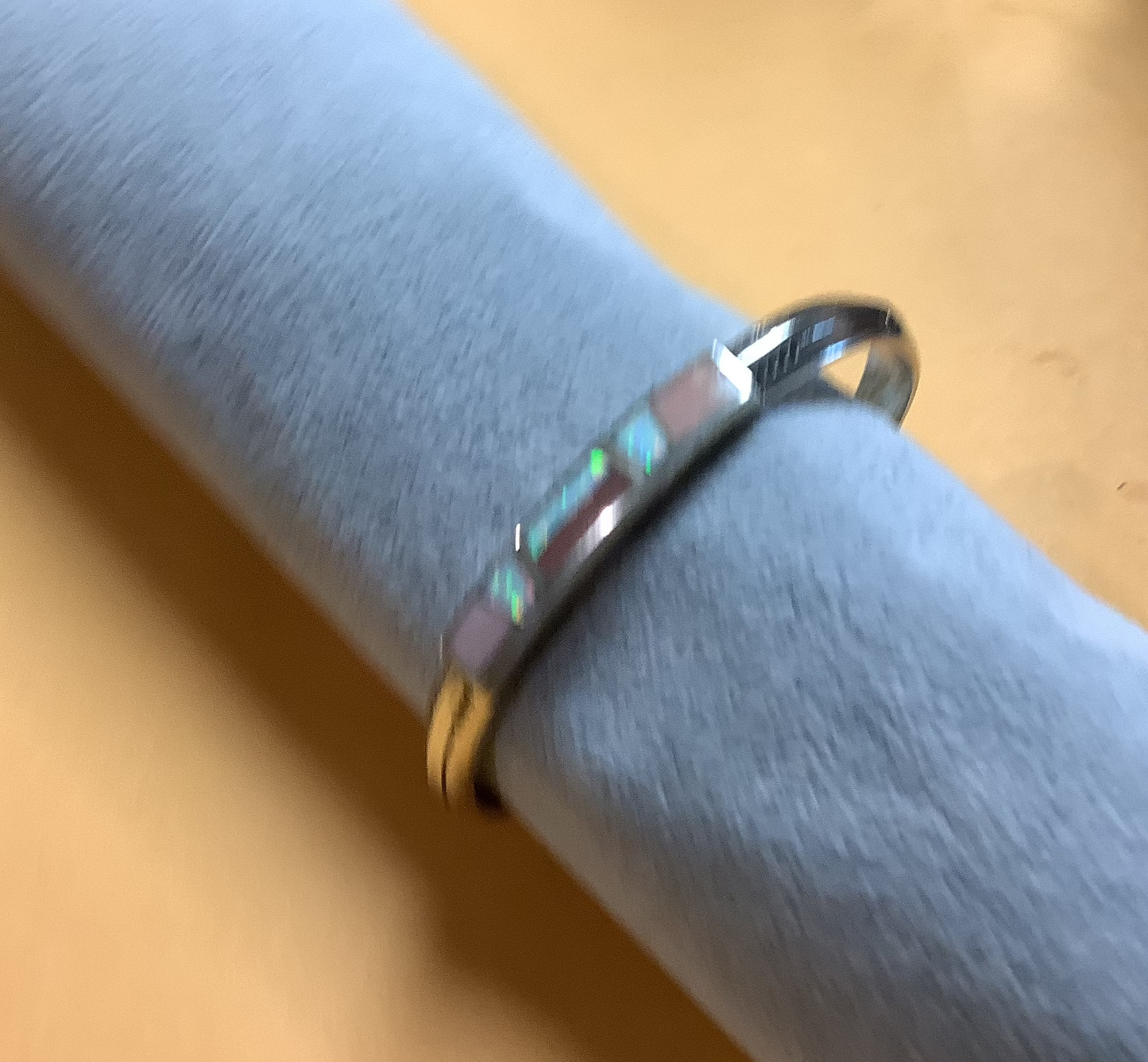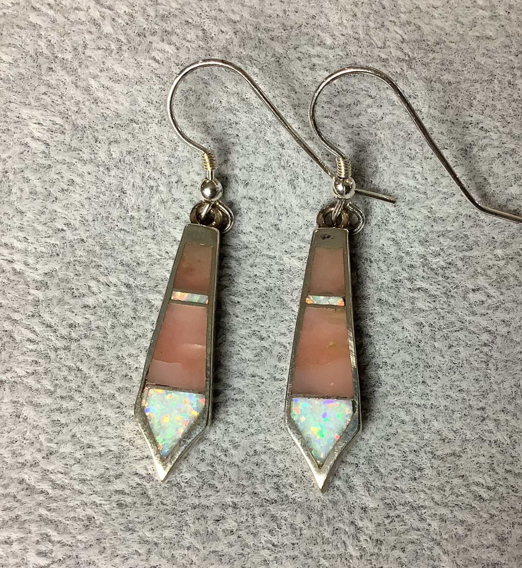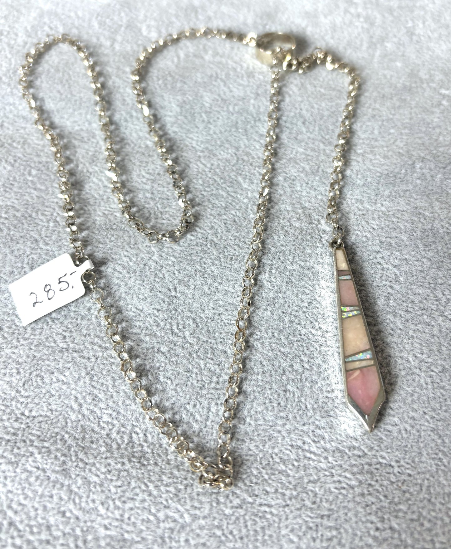 Great style - adjustable sizing (up to 21") in the lariat with a striking (and reversable to sterling) Peruvian opal (the pink) and synthetic opal (the white sparkly) pendant.