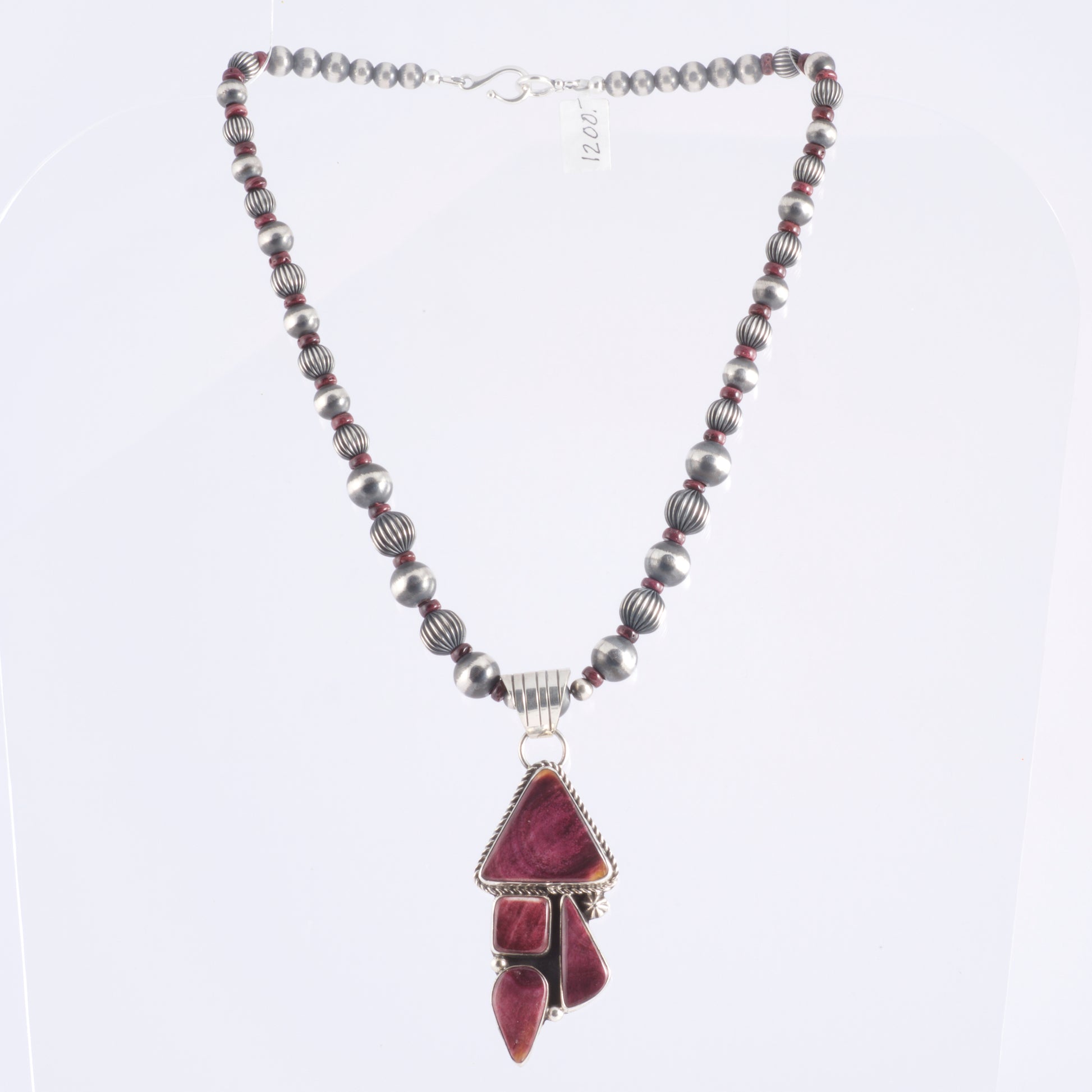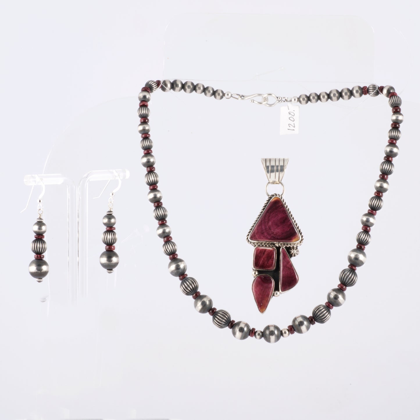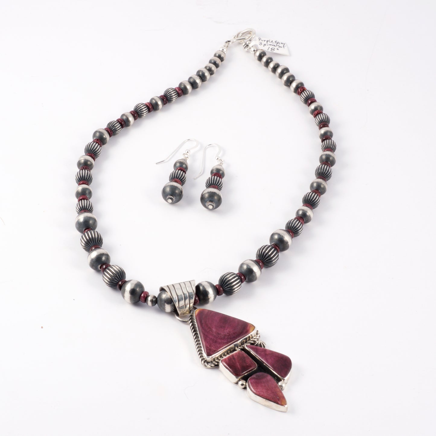 Purple Spiny Oyster Pendant With 18" Necklace and Earrings