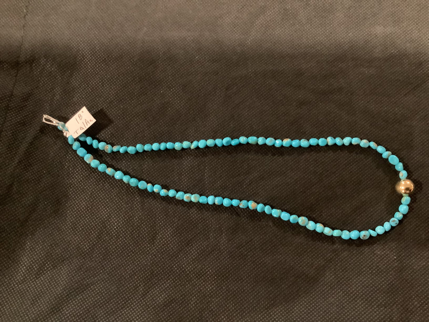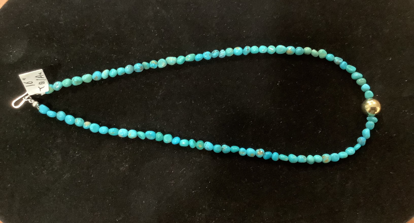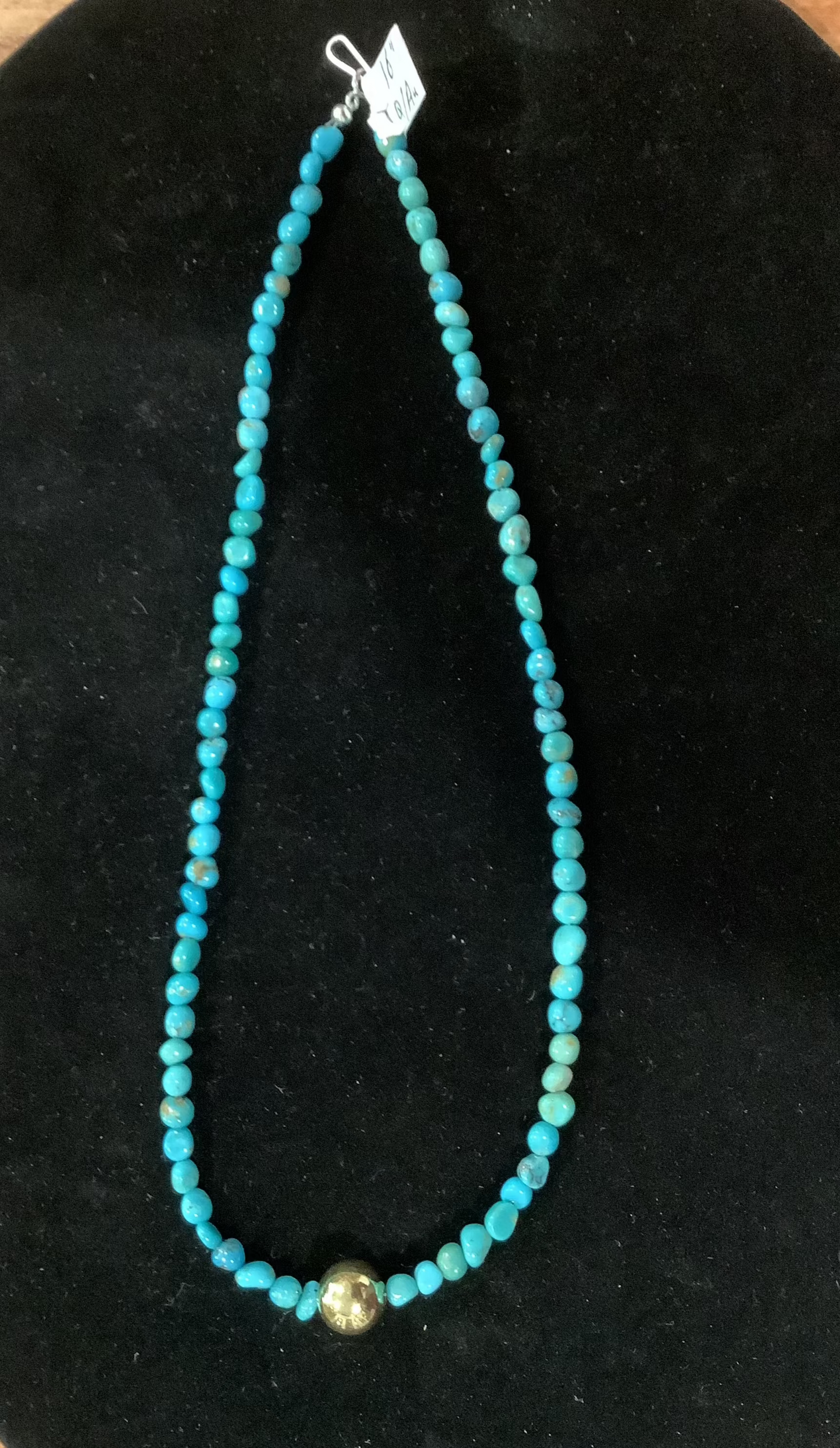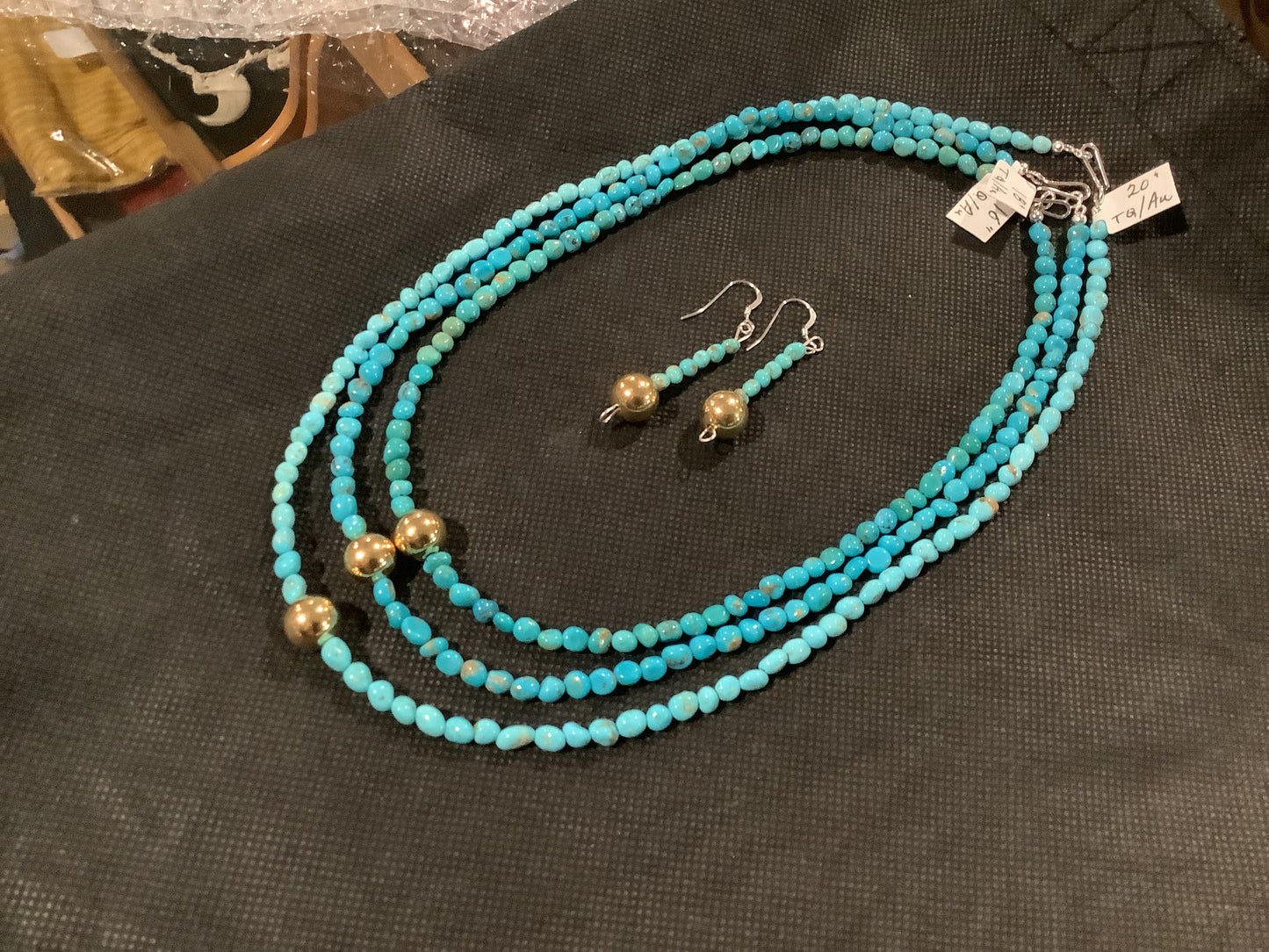 Sometimes all you want is something light, Lori Curtis found these beautiful ... and very light ... turquoise (true Kingman) nugget necklaces and earrings. Like all from Silver Pearl Ranch, Native Made in New Mexico. Just a few of them available at these prices.