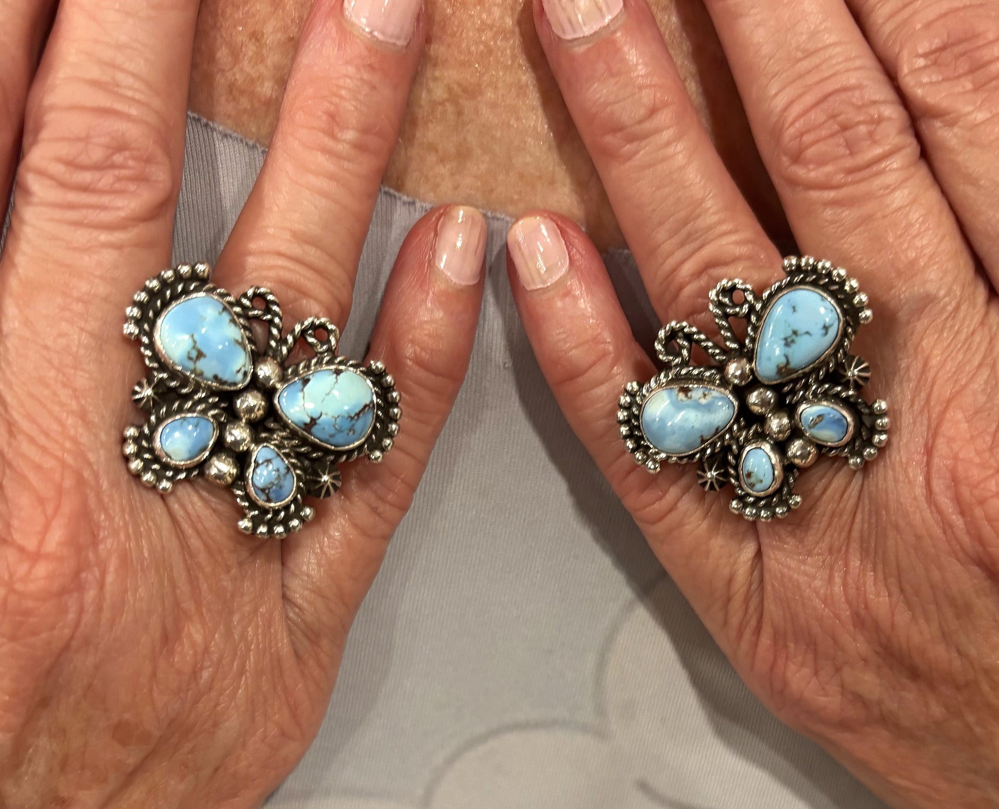 Geneva Apachito, Navajo silversmith, created these butterfly rings and pendants.  Silver Pearl Ranch brought them to me.
