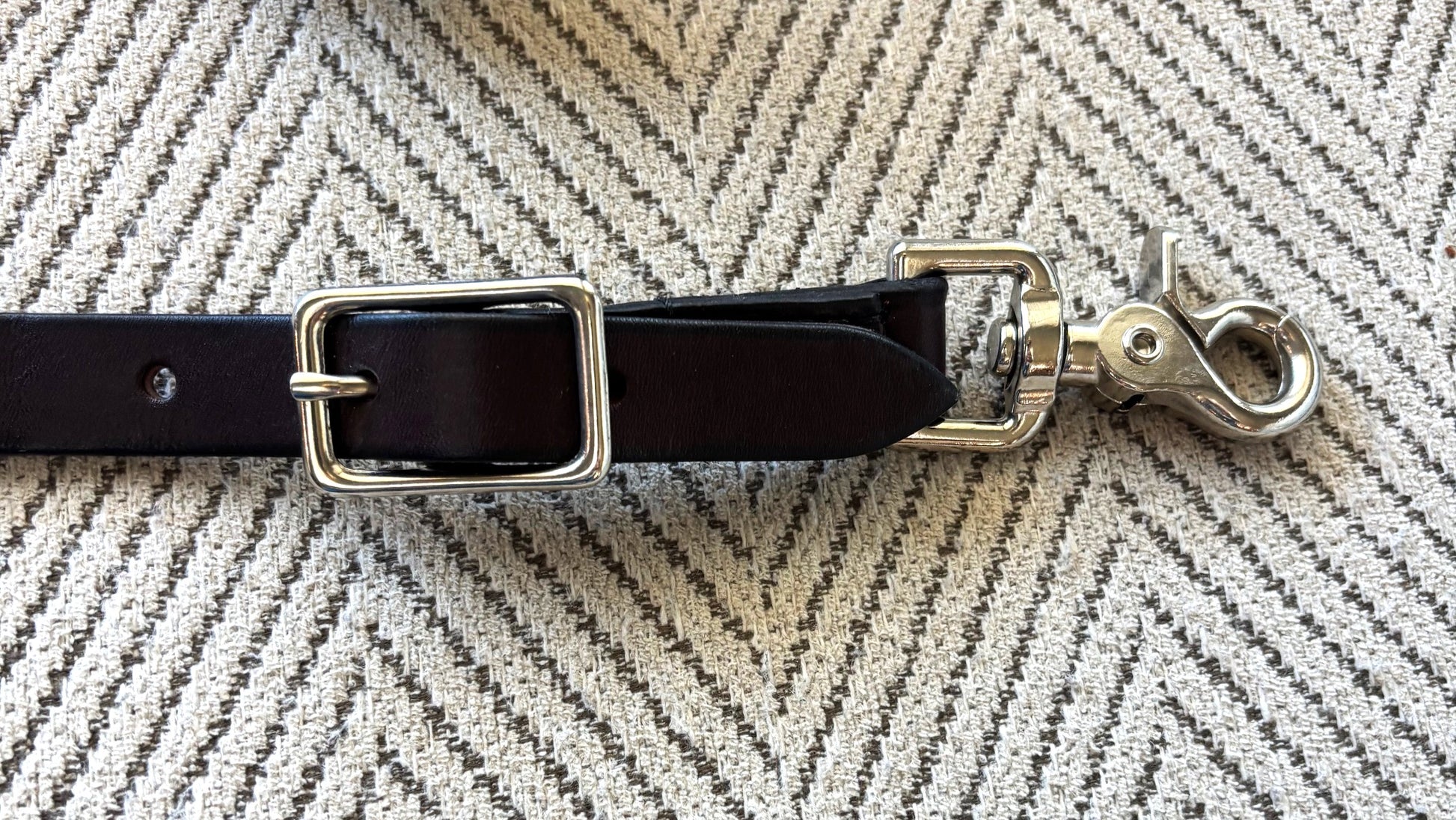 These are as tough as they get. Not bison, but steer harness leather. Chrome lobster clip fasteners. We sold a ton of them in the store .... and did not realize this box of "stragglers" was still here. I still have 3 pair and wear them most of the time. Company was "Amish Village" and they were a joy with which to deal.
