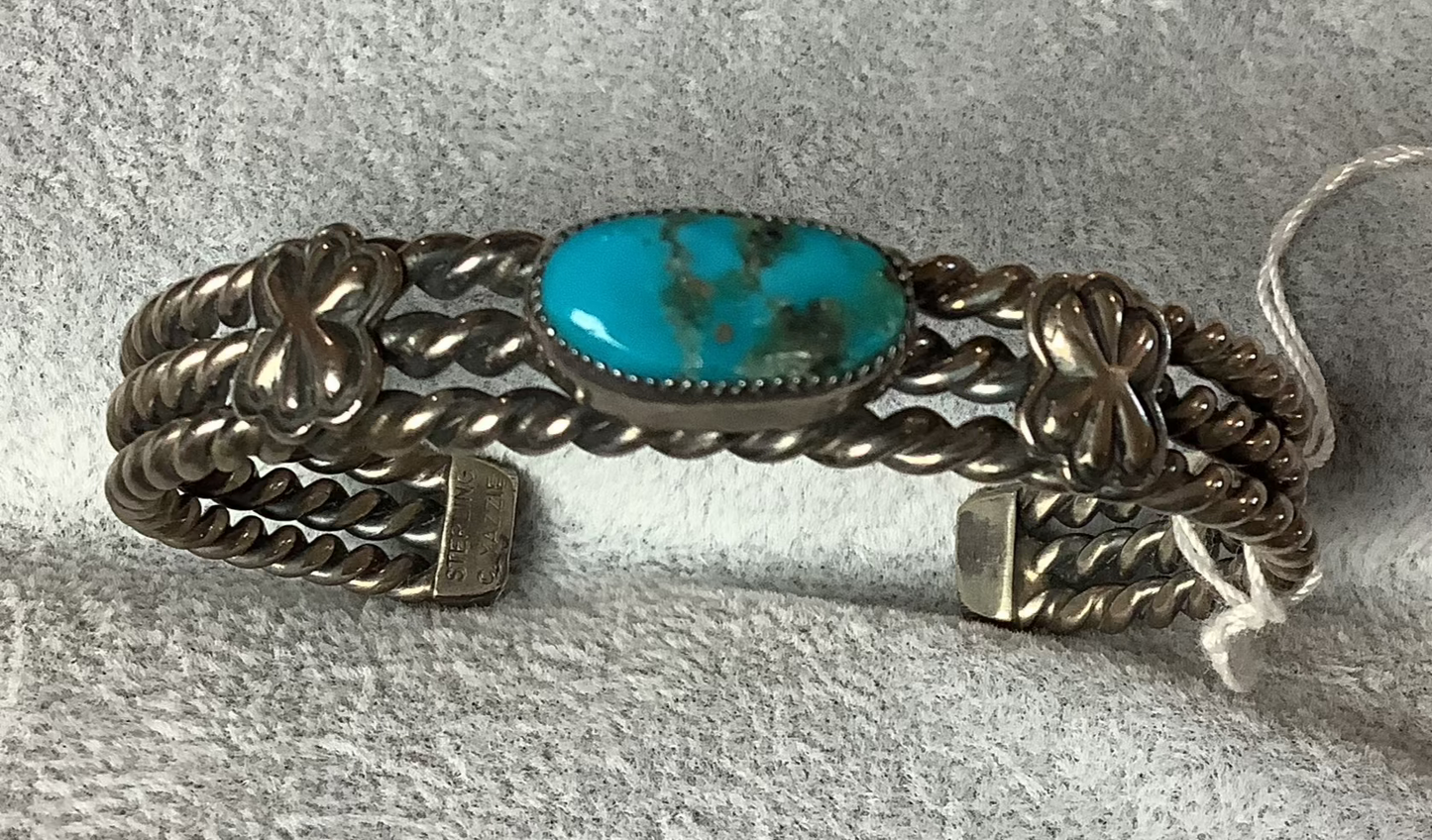 Silver Pearl Ranch - Turquoise nugget and sterling silver twist cuff/bracelet