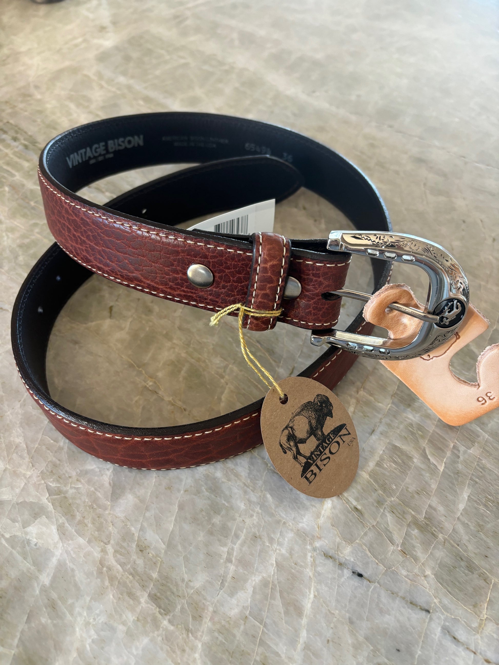 A very simple solid bison leather ... deep shrunken grain bison leather 1 1One of the most popular of the Vintage Bison belts.
